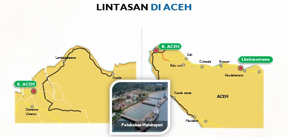 Di Provinsi Nanggro Aceh Darussalam ada 2 lintasan dengan 5 unit kendaraan, yakni Pelabuhan Malayahati – Meulaboh (560 km) dan Pelabuhan Malayahati – Blangbidang (96 km). Pulau Natuna (Provinsi Kepulauan Riau) ada 6 lintasan dengan 16 unit kendaraan.