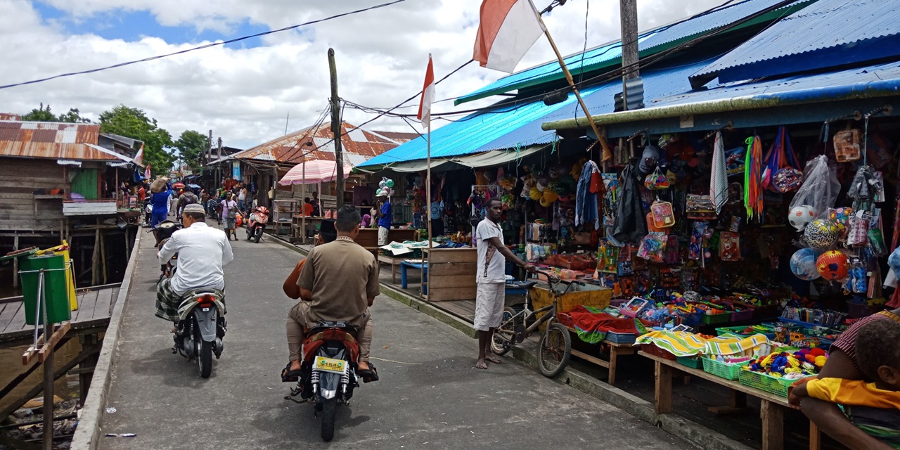 - Aktivitas ojek berkendara listrik di Kota Agats