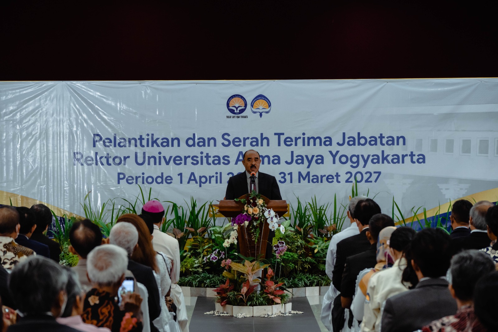 Upacara pelantikan dan serah terima jabatan Rektor UAJY periode 2023-2027, juga dihadiri oleh perwakilan mahasiswa dari masing-masing program studi serta unit kegiatan mahasiswa.