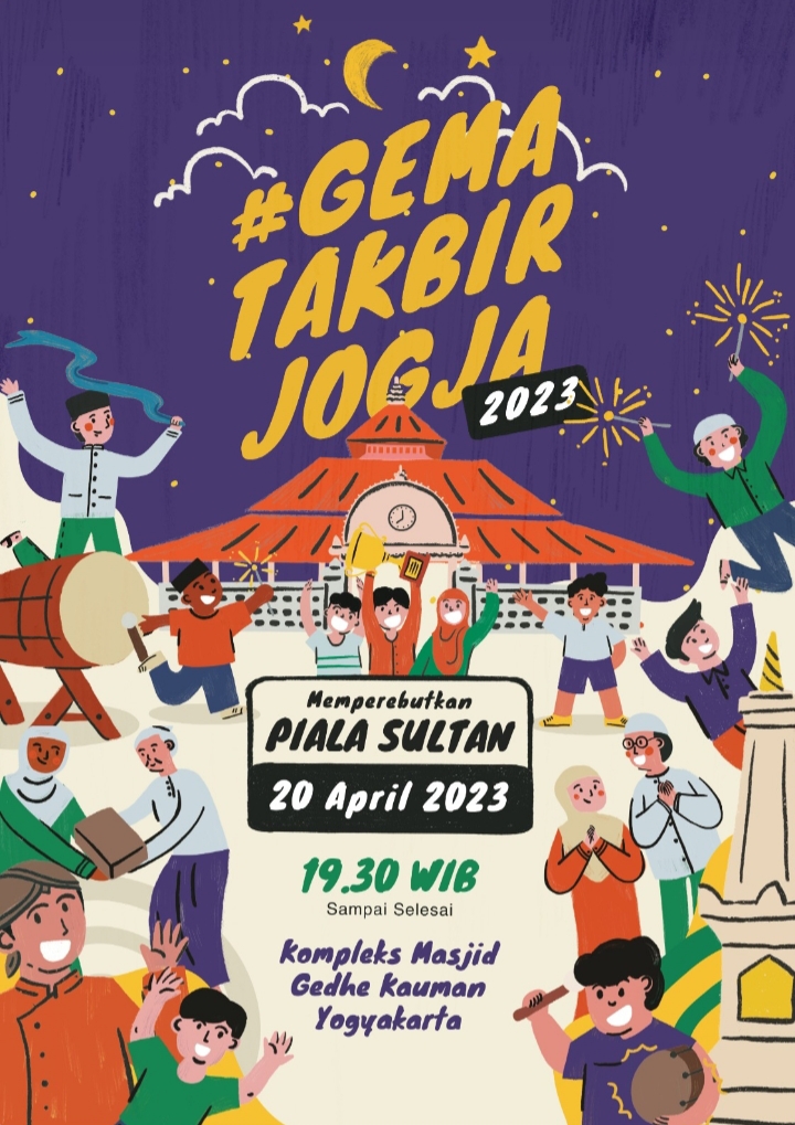 Takbiran merupakan perayaan kemenangan bagi umat Islam diseluruh dunia setelah berpuasa Ramadhan selama 1 bulan lamanya dan merupakan saat menyambut datangnya Idul Fitri 1444 H/2023. Gema Takbir Jogja merupakan salah satu event religius yang menampilkan seni, budaya, atrasksi yang menghibur dan edukatif yang sangat menarik. Agenda ini selalu di tunggu-tunggu dan dinanti masyarakat Yogyakarta.