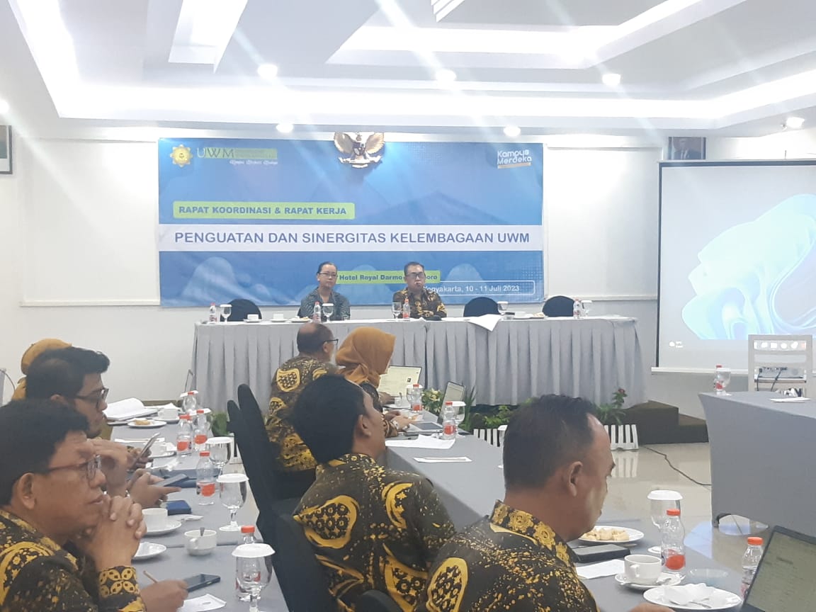 Hal ini disampaikan dalam Rapat Koordinasi dan Rapat Kerja dalam rangka Penguatan dan Sinergisitas Kelembagaan Universitas Widya Mataram (UWM) pada Senin (10/7/2023) di Hotel Royal Darmo Malioboro, yang dihadiri oleh Rektor, Wakil Rektor (WR), Dekan, Wakil Dekan, dan Ketua Program Studi (Kaprodi) serta Kepala-Kepala Lembaga di lingkungan UWM.