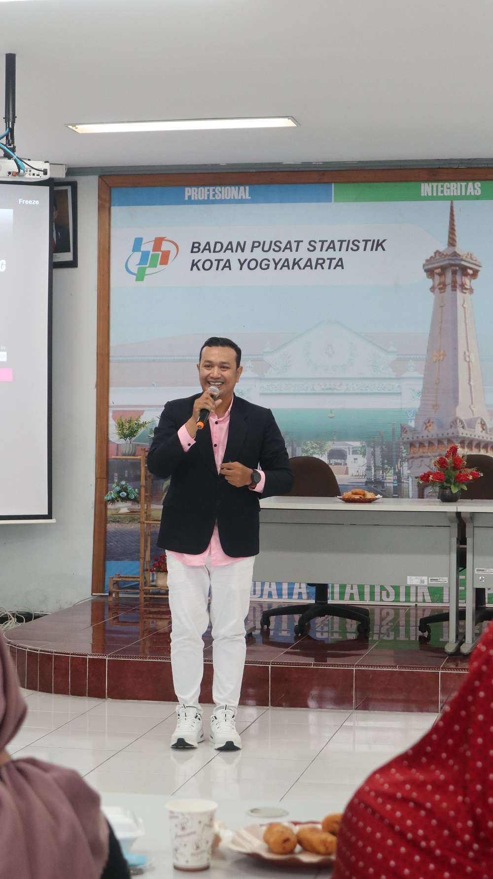 STARJOGJA.COM, Riuh tawa keceriaan terdengar memenuhi ruang rapat Kantor Badan Pusat Statistik Kota Yogyakarta, Jumat (21/7/2023). Puluhan pegawai BPS ini nampak antusias mengikuti setiap paparan hingga games yang dibawakan oleh duet penyiar radio Star FM, Widya Pradipta dan Iwan Agastya.