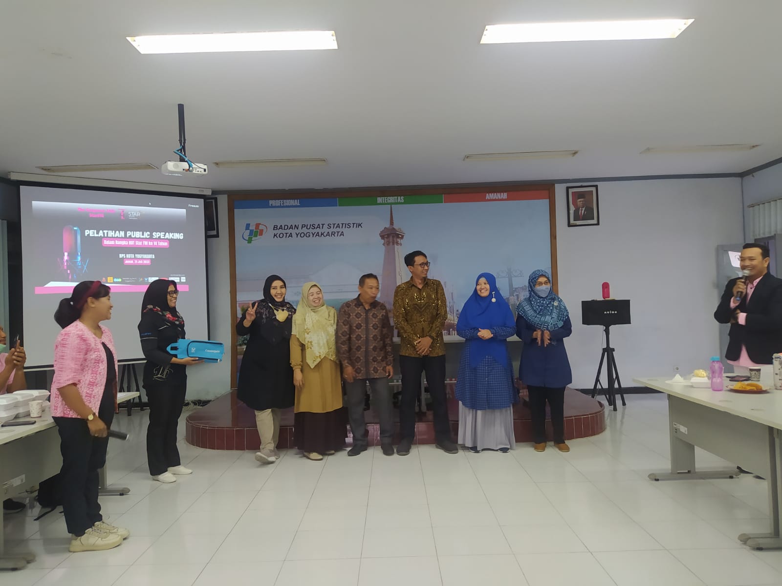 Jumat pagi yang biasa diisi dengan agenda Jumat Cerdas, hari ini diisi dengan pelatihan publik speaking bersama Tim Star FM. Turut hadir kepala BPS Kota Yogyakarta Mainil Asni, SE., ME, Station Manager Star FM Avrilia Wahyuana, Program Director Star FM Deny Artha, ketua panitia HUT 14 Star FM Ardi Sardjono dan segenap tim Star FM.