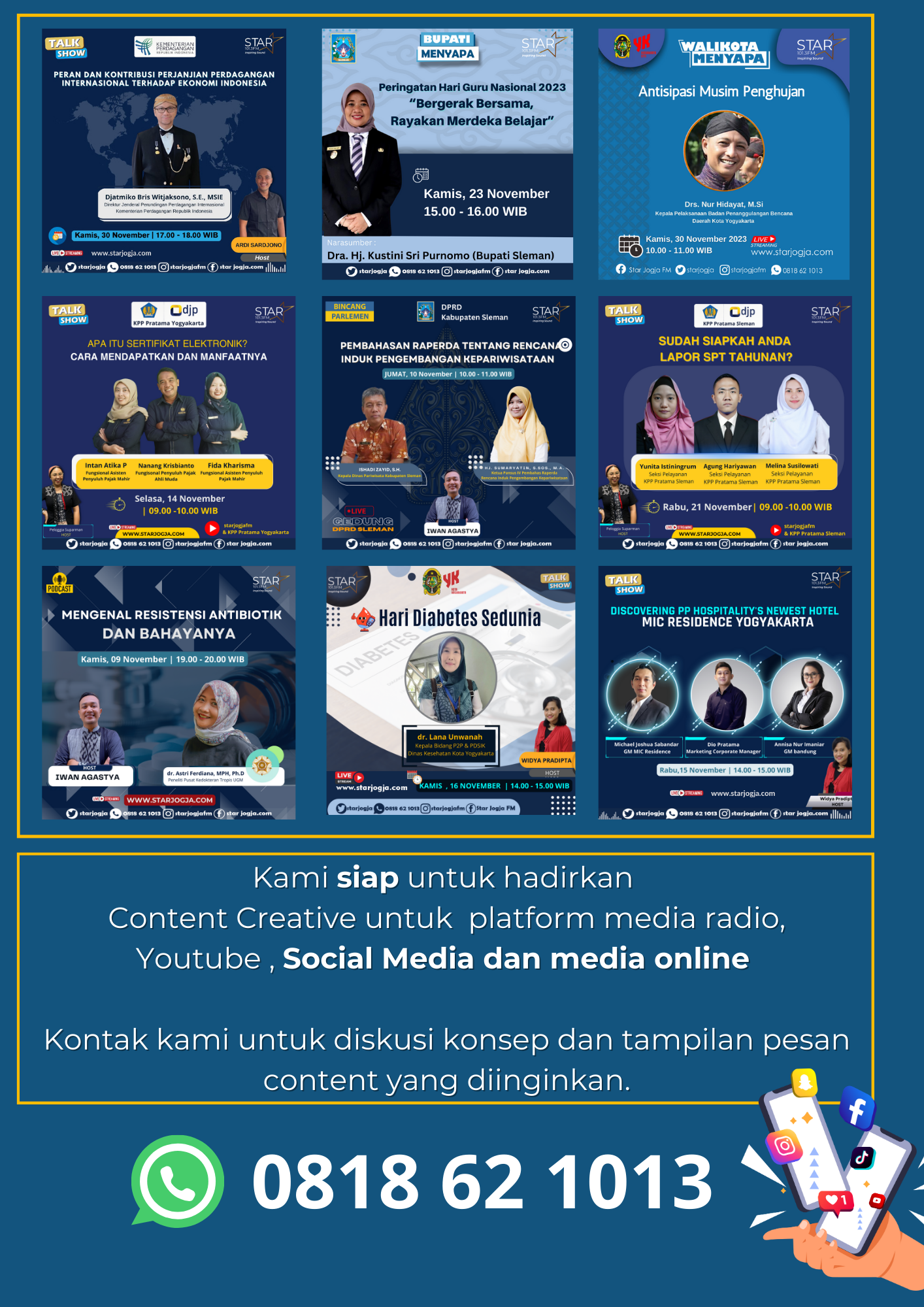 EventFeaturePromo Star Insight November 2023 Hadir dengan rangkuman aktivitas Star FM bersama sejumlah kolega dan inovasi yang telah dilakukan tim Star FM di sepanjang November 2023. Semoga menginspirasi warga Jogja dan sekitarnya… By lia 5 Desember 2023 ShareTweet 0