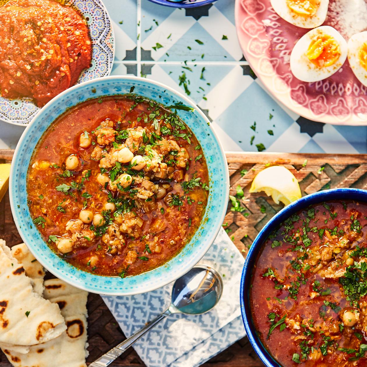 Di sana, bulan Ramadan dimeriahkan dengan cara kekeluargaan dan kasih untuk berbagi. Tidak lupa, Sup Harira yang siap tersaji.